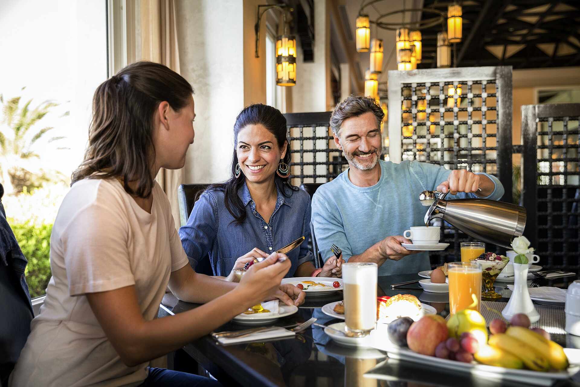 - Frühstück: Kaffeespezialitäten, Filterkaffee, Tee, Wasser, verschiedene Säfte