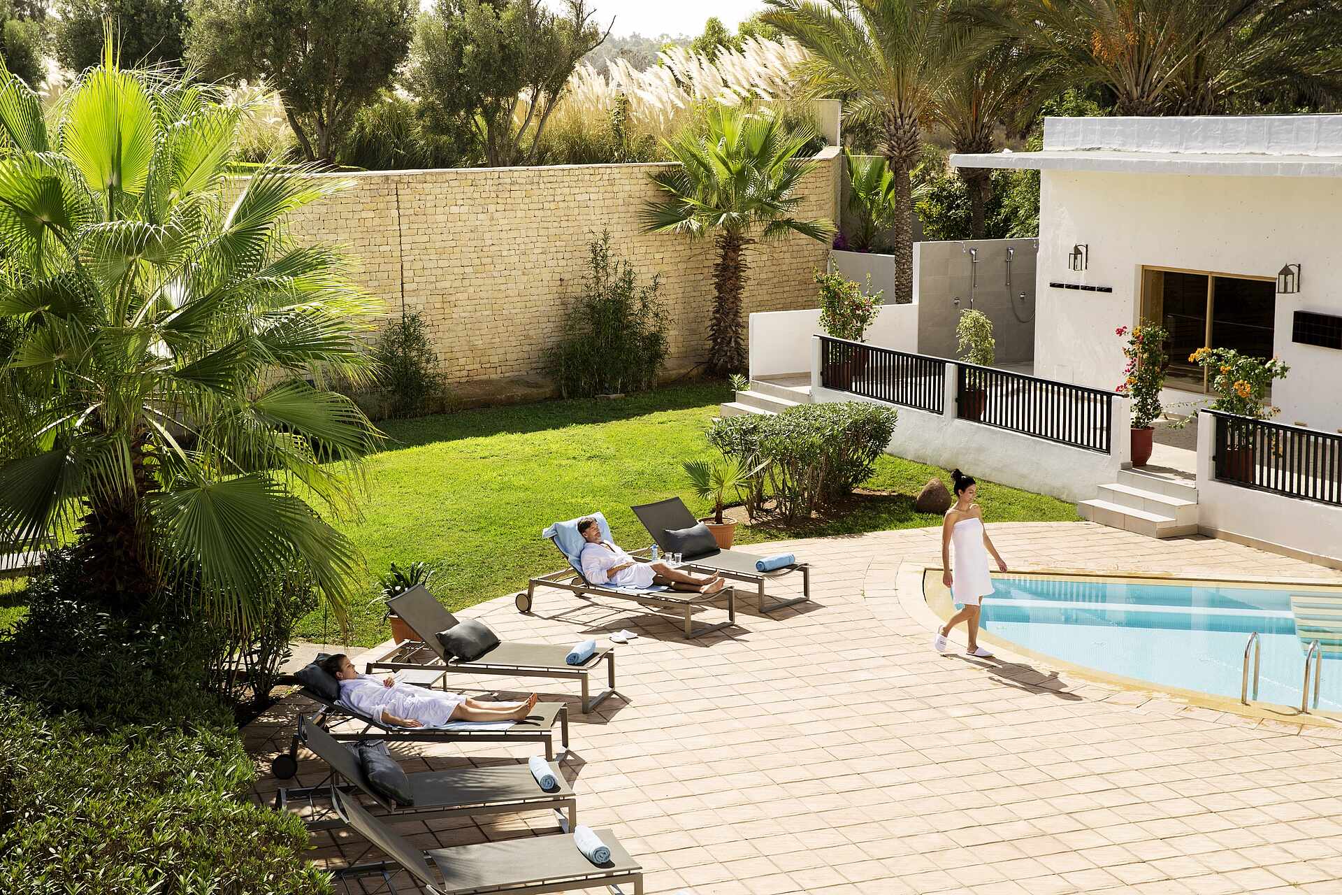 Badetücher sowie Liegen, Sonnenschirme und Daybeds innerhalb des Clubgeländes ohne Gebühr.