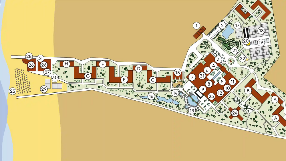 - 2 Restaurants: Hauptrestaurant mit Terrasse, Strandrestaurant