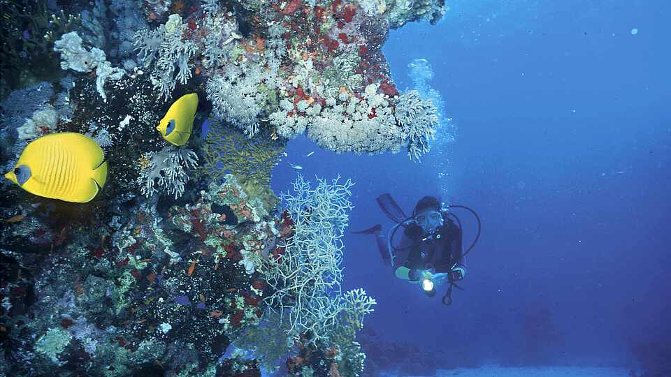 Ergründe die farbenfrohe Unterwasserwelt, die dank ihrer Vielfalt zu einem der besten Tauch- und Schnorchelparadiese der Erde zählt. Über dem Meeresspiegel profitieren die Wind- und Kitesurfer sowie die Freunde des Segelsports von den konstanten Windverhältnissen in einer der schönsten Buchten Ägyptens. Der ROBINSON SOMA BAY ist ein idealer Ausgangspunkt für deine Tauchausflüge. Entdecke wunderschöne Tauchspots und erfahre mehr über deinen Tauchurlaub mit ROBINSON.
