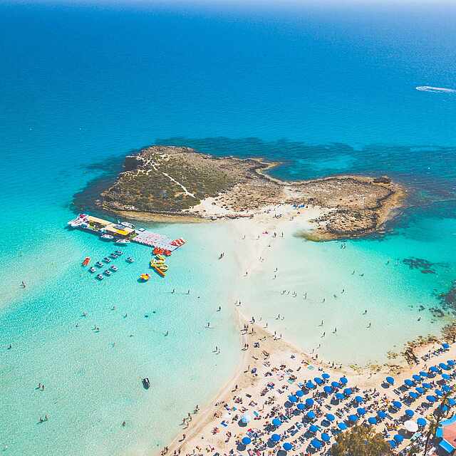 10.000 Jahre Kulturgeschichte, facettenreiche Natur und traumhafte Strände – auf Zypern, der drittgrößten Insel im Mittelmeer, verbringst du deinen Urlaub mit extra viel Abwechslung. Bei 300 Sonnentagen im Jahr dauert die Badesaison von April bis Oktober. Sagenhaft ist nicht nur das Klima, sondern auch so manche Geschichte, die man sich hier erzählt. So soll beispielsweise die Liebesgöttin Aphrodite vor Zypern aus dem Meer geboren worden sein.