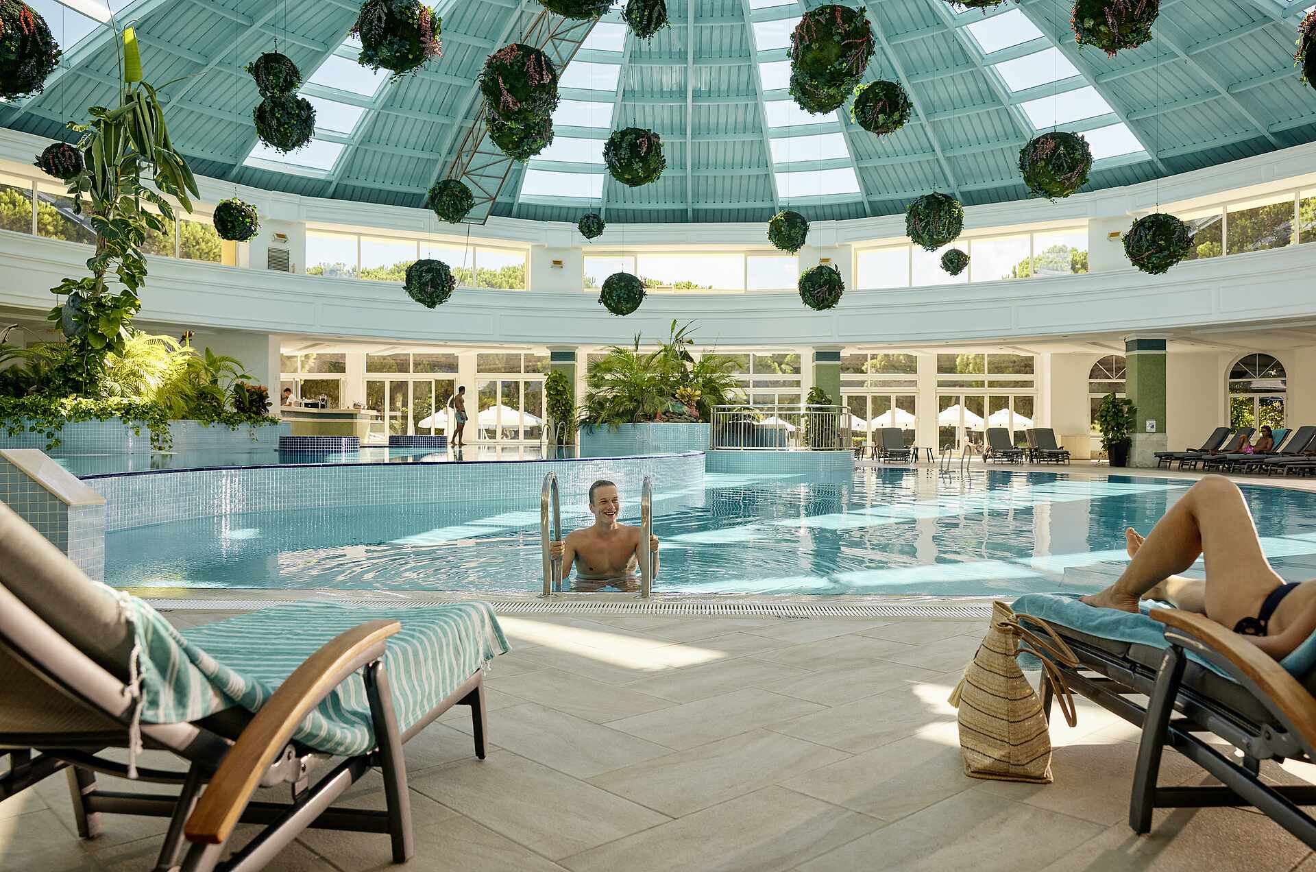 - Hauptpool (Outdoor): 950 m² groß, 1,40 m tief, nicht beheizbar