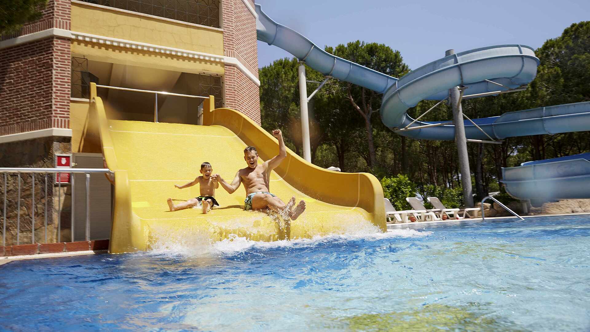 - Kinderpool mit Wasserrutsche (Outdoor, nutzbar von April - Anfang November): 240 m² groß, 0,90 m tief, beheizbar
