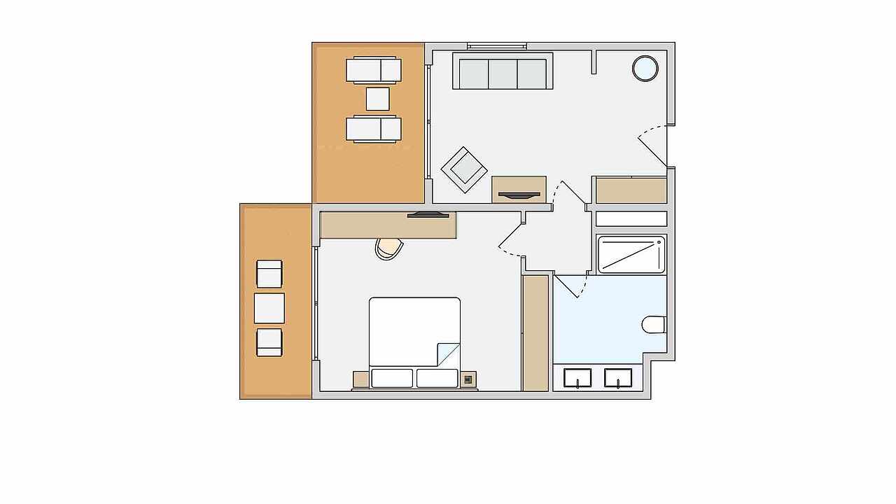Rechtlicher Hinweis zum Zimmerfoto/-Skizze: Es handelt sich um Wohnbeispiele. Die Proportionen sowie die Raumaufteilung können von den realen Wohneinheiten abweichen.