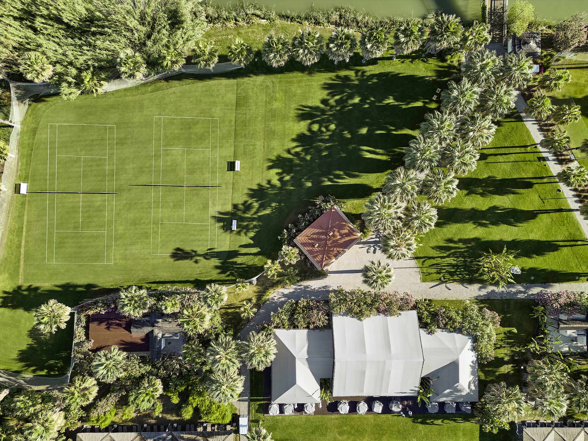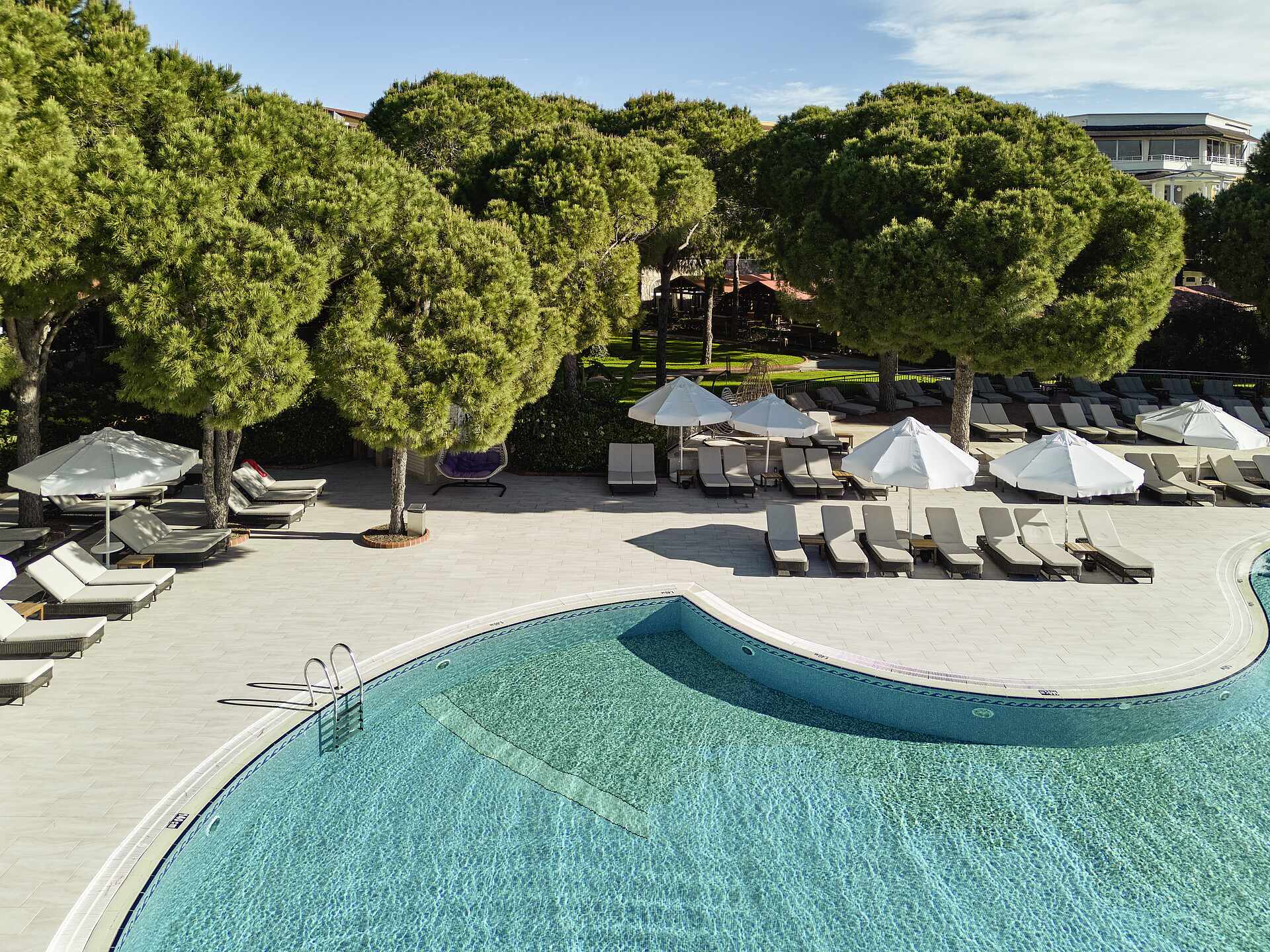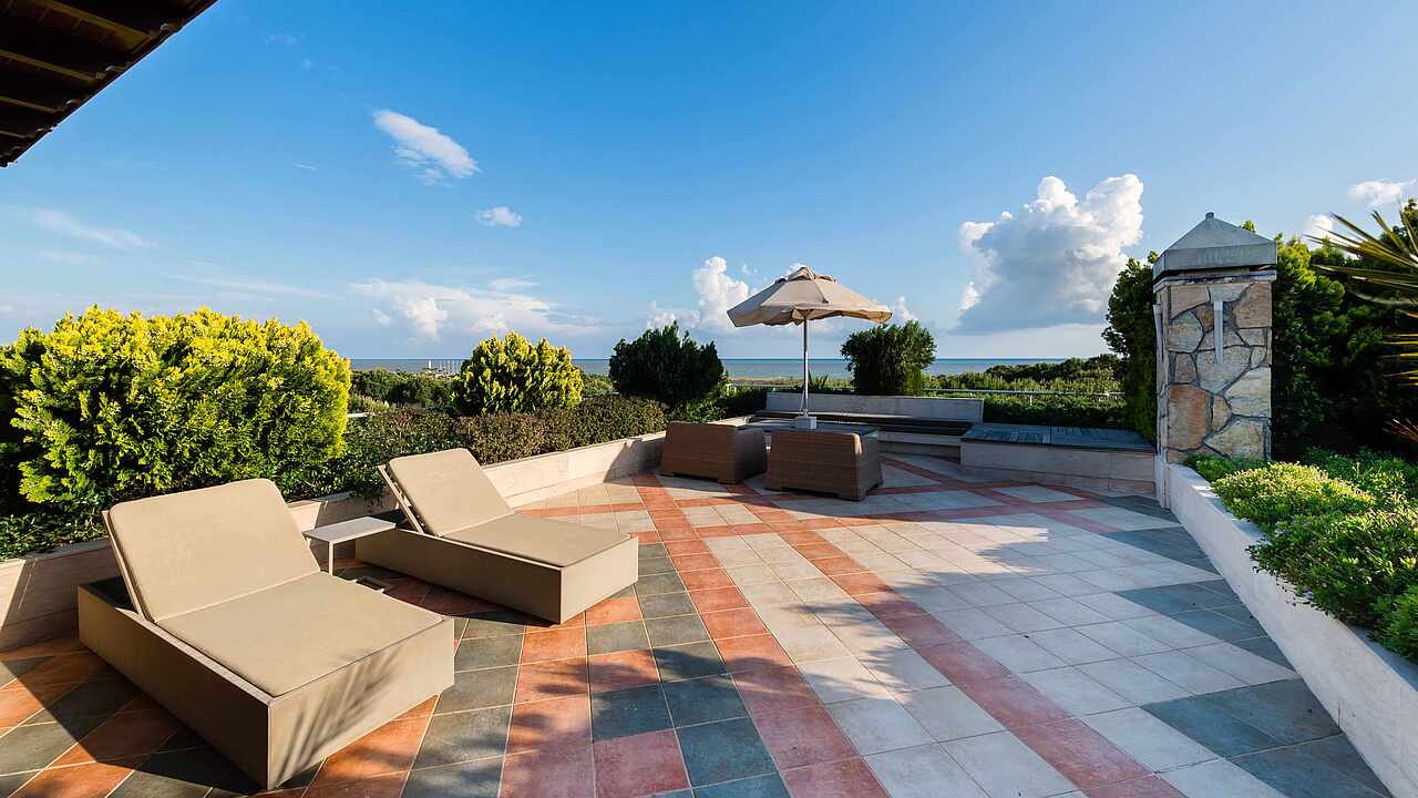 - Gartenanlage: großzügige Gartenanlage mit Liegewiese unter Pinienbäumen