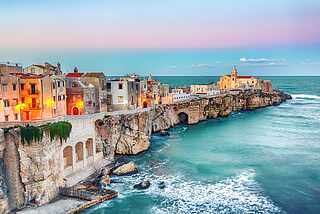 Der Gargano liegt im Norden Apuliens und wird auch als Sporn des Stiefels bezeichnet. Große Teile des Gebiets gehören zum Nationalpark Parco Nazionale del Gargano, der durch dichte Buchen- und Pinienwälder sowie beeindruckende Karstlandschaften dominiert wird. Auf steilen hoch über dem Meer liegenden Karstklippen gebaut sind auch die beiden Perlen des Gargano Peschici und Vieste, die dich garantiert verzaubern und dir immer wieder atemberaubend schöne Ausblicke bieten. Ein unvergessliches Erlebnis deines Urlaubs in Apulien ist auch ein Ausflug zu den hier vor der Küste liegenden Tremiti-Inseln, ein wahrhaftiges Paradies aus weißen Felsen und mediterraner Vegetation.