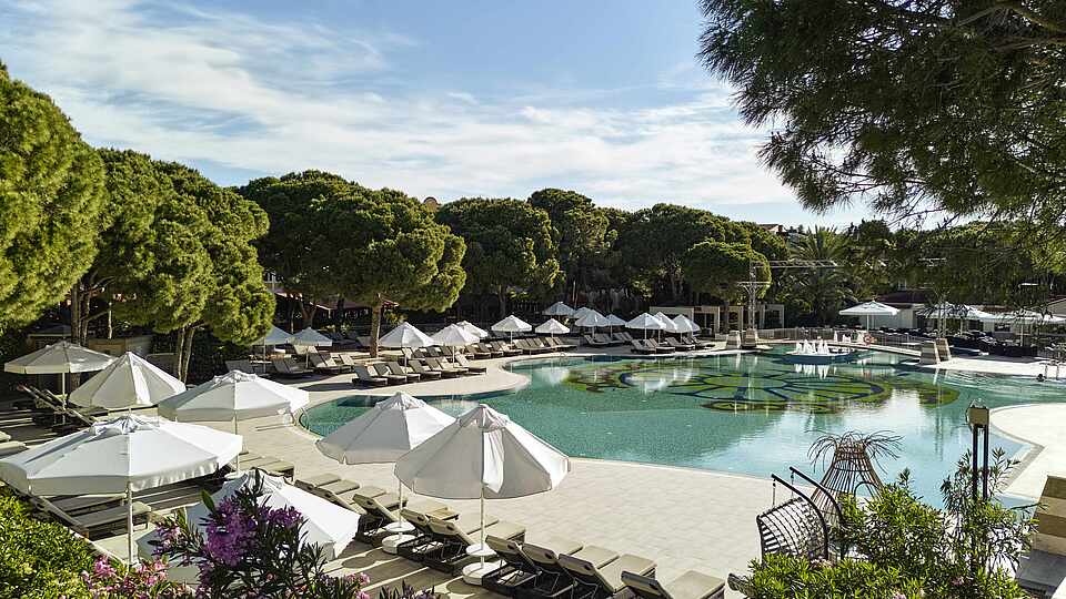 Verschiedene Poolanlagen stehen zur Wahl, und in fünf Restaurants erlebst Du kulinarische Gaumenfreuden der Extraklasse. Exotische und klassische Cocktails bekommst Du in den fünf Bars. Bei Besuchen im WellFit-Spa kombinierst du perfekt Wellness und Fitness. Genieße Thalasso und Ayurveda, besuche das türkische Hamam und schwimme im großen Indoorpool. Der ROBINSON NOBILIS ist außerdem ein Eldorado für Golfer. Der clubeigene Platz bietet Schnupperkurse und aufregende Spielmöglichkeiten für fortgeschrittene Golfspieler. Plane jetzt Deinen Urlaub in Belek im ROBINSON NOBILIS. Entspannung, Erholung und abwechslungsreiche Aktivitäten im exklusiven Umfeld erwarten Dich.
