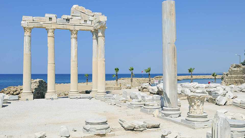 Etwa 17 Kilometer östlich von Belek liegt die gut erhaltene antike Stätte Aspendos. Sie ist bekannt für das römische Theater, in dem rund 15.000 Zuschauer Platz finden. Mit etwas Glück bist du während eines Konzertes in Belek, das Theater wird heute immer noch für Veranstaltungen genutzt. In Aspendos gibt es außerdem eine Basilika, eine Agora, Nymphäen und Überreste von Aquädukten zu sehen.