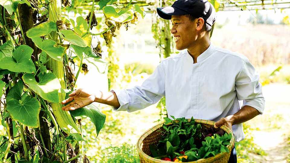 ,,At ROBINSON NAM HOI AN, we’re passionate about sustainability and committed to providing an unforgettable, eco-friendly experience. We’re reducing single-use plastics, creating water-efficient gardens, using local produce, and supporting the local community. Guests can enjoy a green paradise that minimizes their environmental footprint while having an amazing holiday. One highlight is our herb garden, which supplies the kitchen with fresh Asian herbs and flavors. This little oasis is open for all guests to explore."