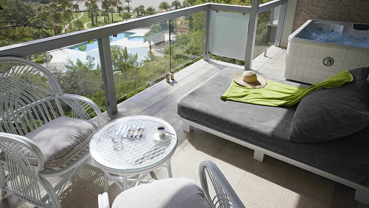 - Bahçelerde Bali çardakları / sedirleri (ek ücret, rezervasyon gereklidir)