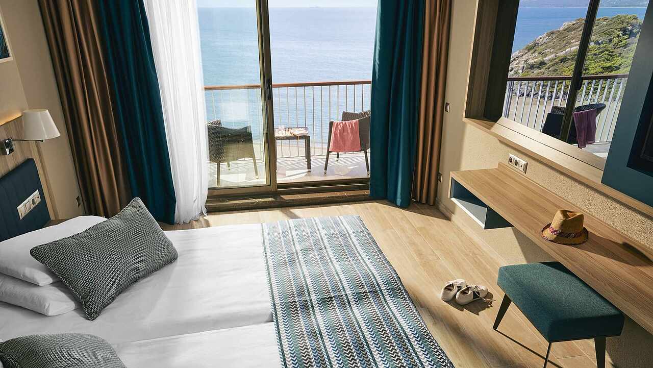 Bir tepe üzerinde yer alan kulüp, Sarıgerme'nin geniş kumlu koyunun ve açık deniz adalarının rüya gibi manzarasını sunmaktadır.